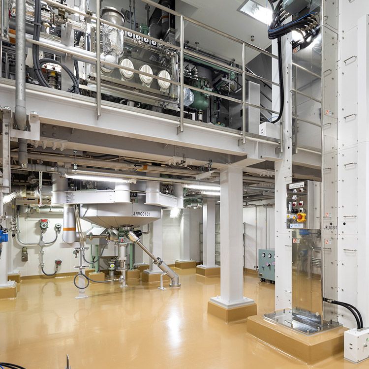 洗浄技術は洗浄対象とする化合物の特性、設備の構造によっても多種多様です。また、全ての設備を分解して洗浄できるという訳ではありません。FJ2では、化合物が「残留しにくい構造」、残留しても「容易に洗浄できる機構」の設備を導入し、洗浄期間の短縮を実現させました。