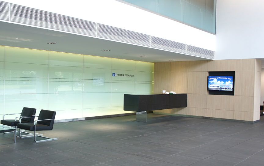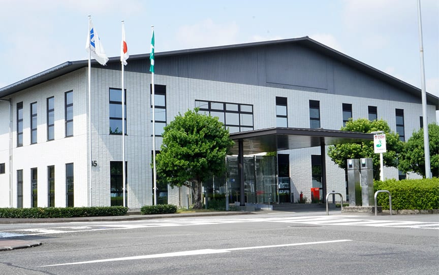 2009年に新設された事務厚生棟には、製造をサポートする部署や食堂などの福利厚生施設が入っています。清潔なエントランスでは笑顔で来客を歓迎します。