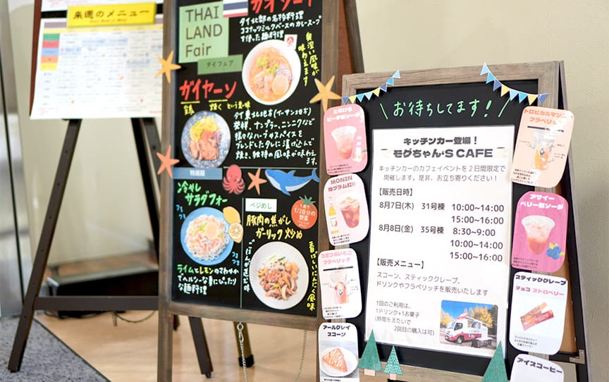 食堂では、季節のフェアメニューやキッチンカー出店など、