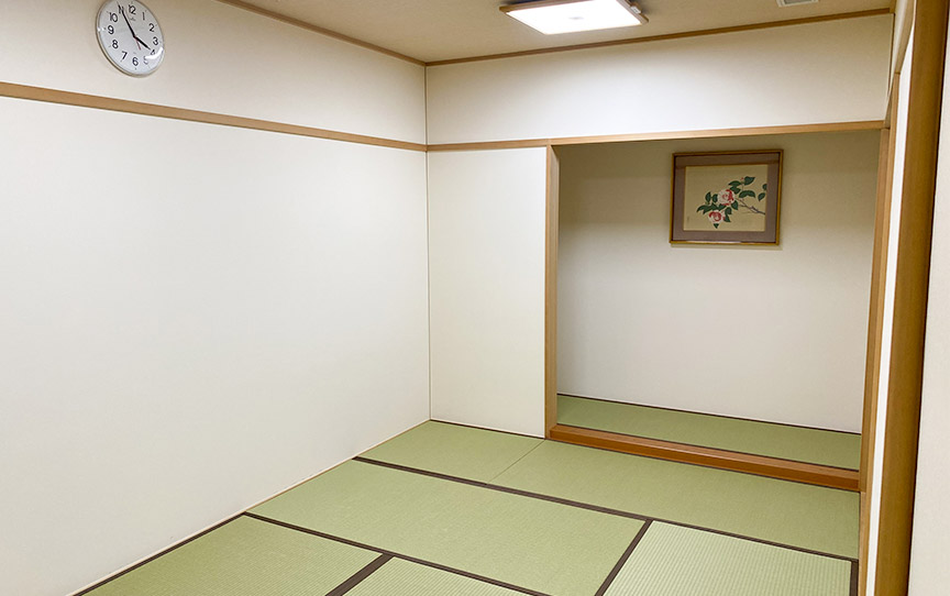 囲碁や将棋を楽しんだり、畳の上でほっと一息つける和室の休憩室があります。